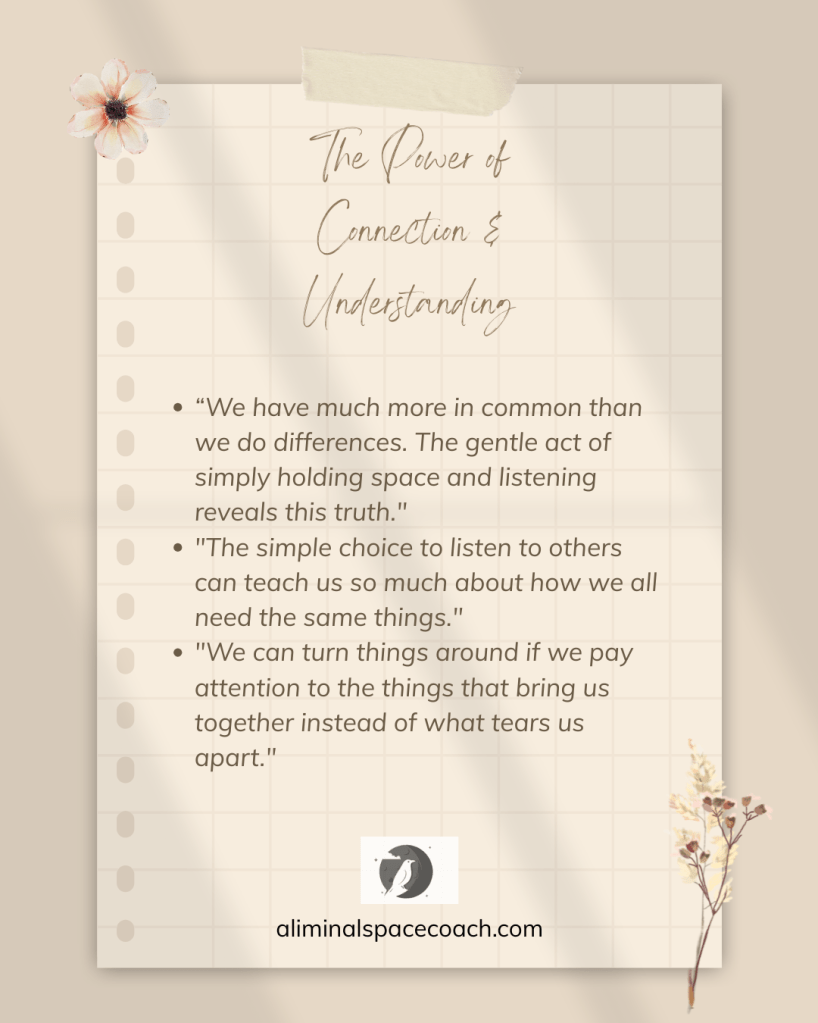 This reflection is part of an ongoing journey of learning to listen—to myself, to others, and to the wisdom that emerges when we create space for genuine connection despite our differences.