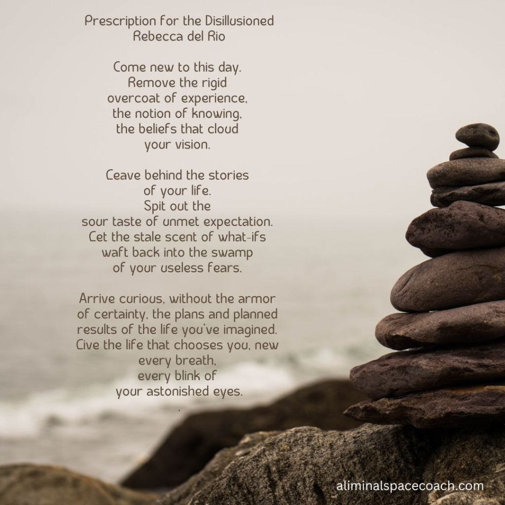 Weller goes on to share the poem by Rebecca del Rio, Prescription for the Disillusioned.