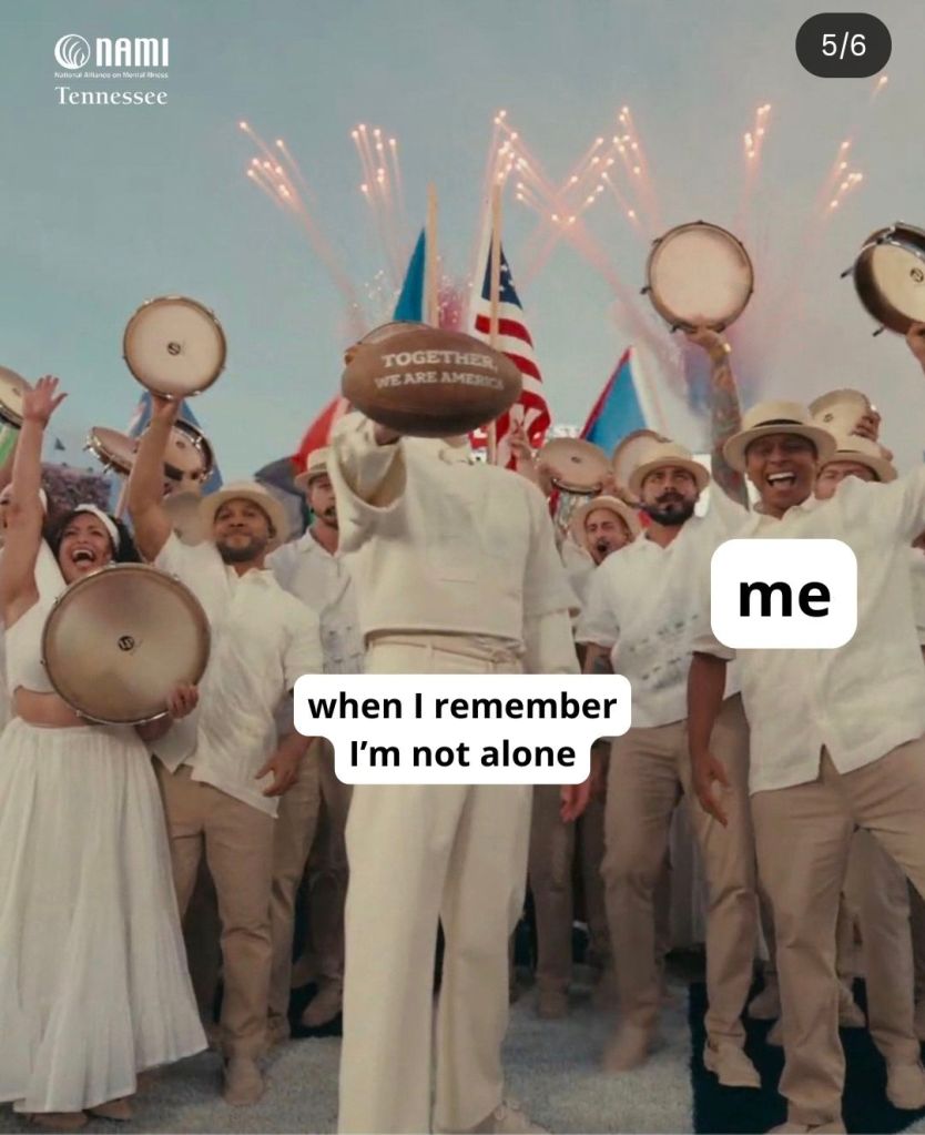 I loved Bad Bunny’s performance. The image of people from different backgrounds holding different flags, walking side by side, with those words displayed—”The only thing stronger than hate is love.” Unity through diversity. Community. All of it done tastefully and with hope.